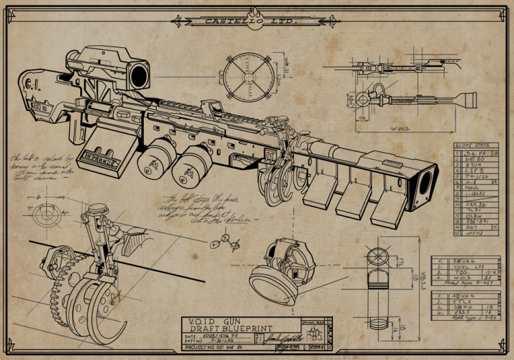 Custom-made for the continent’s best gunslinger Sandal Castell. A void gun is a blend of elegance, precision, masterful engineering, and deadly firepower. Legend has it that Sandal woke up one morning and decided he needed a bigger rifle. So he made a weapon that threatened the Gods themselves.